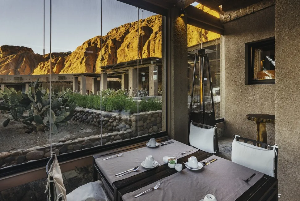 Six pools with purifying water and sweeping views of the Catarpe Valley invite guests to unwind between activities. Puri Spa offers a full range of treatments designed to revitalize body and spirit, complimented by saunas and mineral baths overlooking the ever-changing colours of the desert. Ochre mornings give way to pink-hued sunsets, and finally, a theatre of stars thanks clear skies and remoteness.