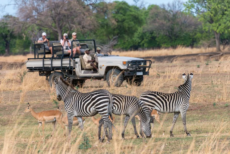 Under the guidance of some of the Luangwa’s most expert guides, guests explore prime South Luangwa wilderness through day and night game drives in the low-traffic Nsefu area. As with Olimba’s sister camp Tafkia, there are specialist opportunities for photography and birding (hundreds of species), plus close-up “armchair” sightings from dedicated hides, including a private lagoon hide and seasonal Carmine bee-eater hide. Cultural visits to nearby Mkasanga Village can also be arranged, alongside options such as private vehicles and guides for added flexibility—delivering strong chances to encounter leopard, lion, elephant, buffalo, wild dog, and the area’s distinctive giraffe.
