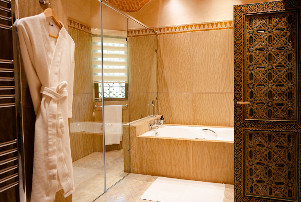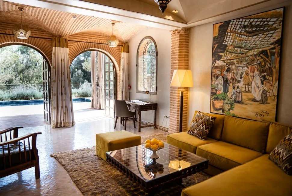 Each of the nine pavilions is set in its own spacious, private garden enclosed by traditional earthen walls, with a roof top terrace to enjoy the sun or an early morning breakfast. With views over the lush gardens and Atlas Mountains the only difference between the garden and pool pavilions is the heated private pool. The interiors are richly designed, mostly by hand, in Berber colours and style. Each room enjoys it’s own lounge area and log burning fireplace for the cooler evenings. With their own Smart TVs with VOD, desk area, tea and coffee facilities, complimentary welcome minibar stocked with local wine, beer, and soft drinks, guests receive the maximum level of modern comfort.